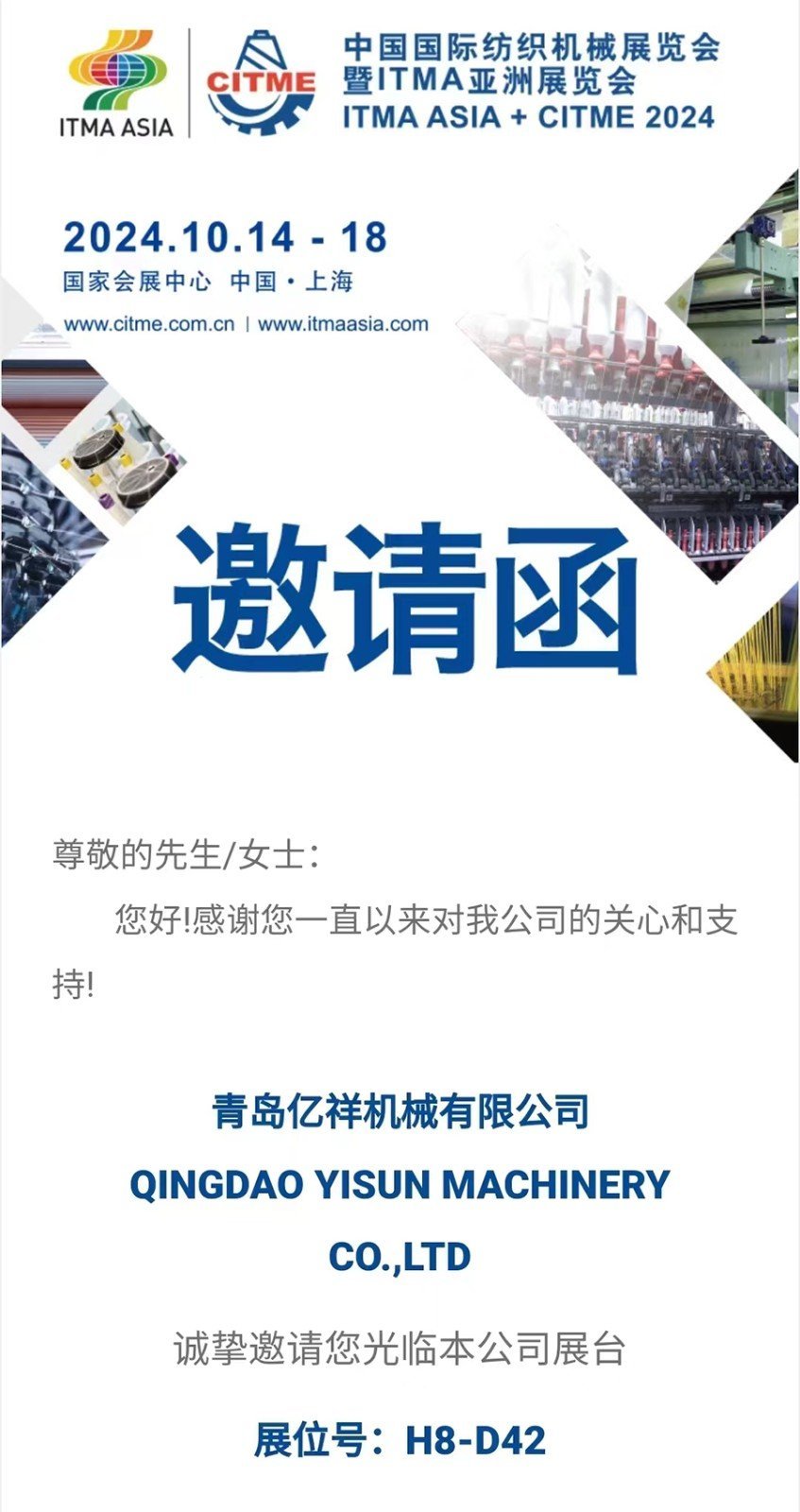 Компания Qingdao Yixiang приняла участие в Китайской международной выставке текстильного оборудования ITMA Asia, проходившей с 14 по 18 октября 2024 года в Шанхае, Хунцяо, Национальный выставочный центр. Добро пожаловать!